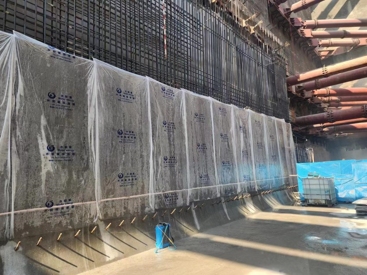 混凝土節(jié)水保濕養(yǎng)護(hù)膜,是以新型可控高分子吸水材料為核心,以塑料薄膜為載體,通過設(shè)備加工復(fù)合而成的卷材產(chǎn)品。其中高分子材料可吸收自重200倍的水分子, 吸水膨脹后變成透明的晶狀體,把液態(tài)水變成固態(tài)水,每平方米養(yǎng)護(hù)膜可蓄水0.5KG,成為一個(gè)固態(tài)的微型水庫,然后通過毛細(xì)管的作用向混凝土養(yǎng)護(hù)面滲透, 同時(shí)不斷吸收混凝土在水化過程中產(chǎn)生的蒸發(fā)水,因此在一個(gè)養(yǎng)護(hù)期內(nèi)總能保持混凝土表面濕潤。
